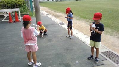 水鉄砲で的あてをしたり、大きなシャボン玉を作ったりと、工夫して遊ぶ姿が見られました。