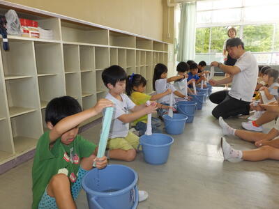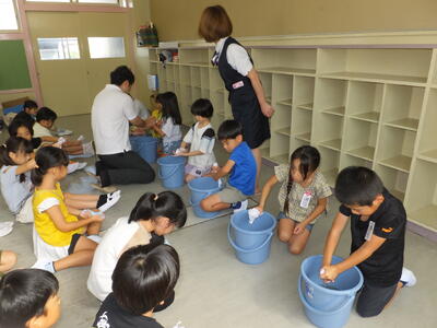 ほうきは「おさえばき」、ぞうきんは「たてしぼり」など、分かりやすく、楽しく教えていただきました。