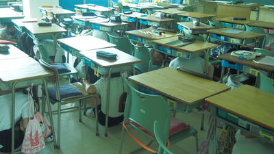 第1回避難訓練 投稿: sibasyou (09:58) 今日は今年度初めての避難訓練。 地震発生後、東校舎・特別教室での火災発生を想定した訓練でした。 緊急地震速報を受けた、一次避難。 さらには、火事の発生を受けた校庭への避難。 初めての訓練となった1年生も、自身の安全を守るための行動をとることができました。 -