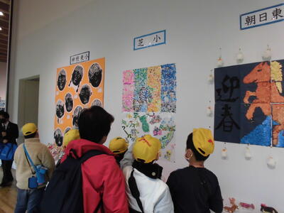 図工の時間に木工用ボンドで作ったキラキラぷくぷくシールを使って、春夏秋冬を表したいと子供たちから意見が出て、連想するものをたくさん表現しました。他の学校のアートにも触れ、貴重な時間となりました。