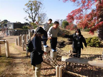 あらかじめ、グループ毎に決めていた動物を探しに、広い年内を歩き回ります。