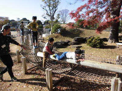 園内は紅葉の真っ盛り。動物だけでなく冬の自然も満喫します。